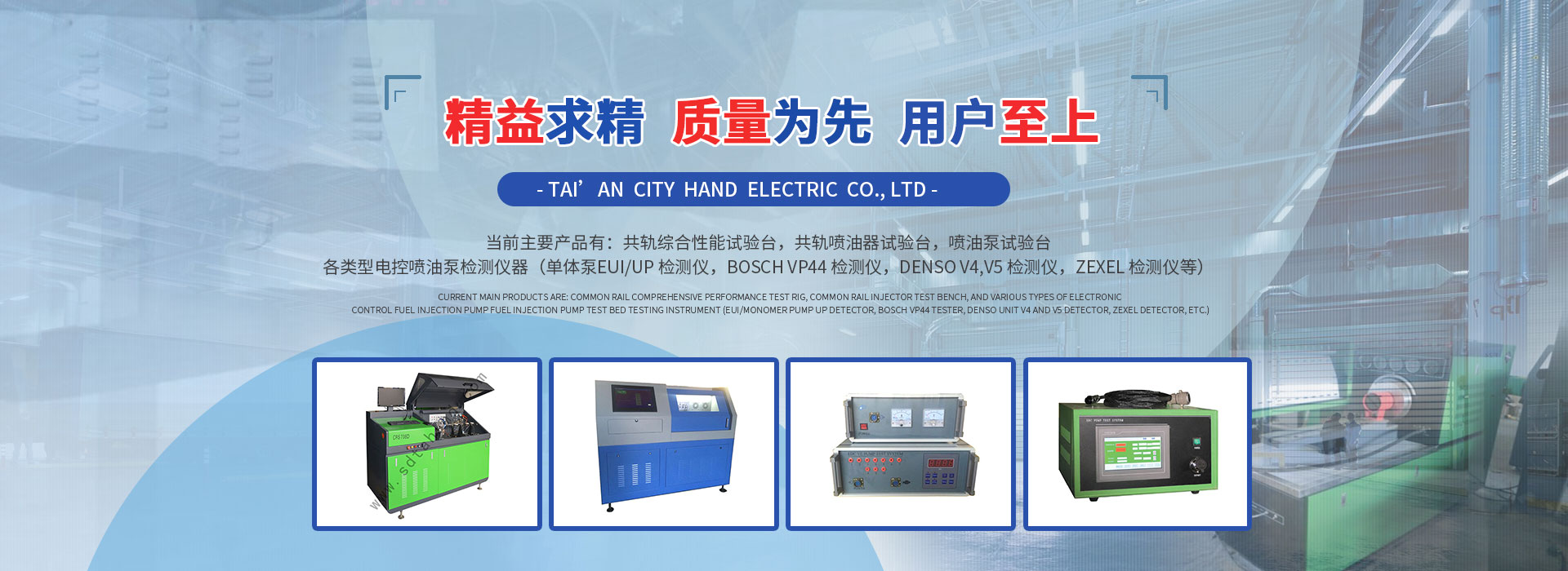 是設(shè)計、制造和生產(chǎn)內(nèi)燃機檢測試驗設(shè)備的企業(yè),集生產(chǎn)制造、配件銷售為一體